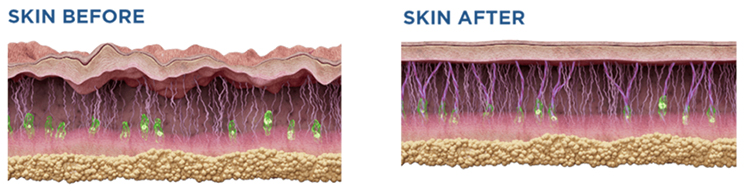 Estimula la producción de ácido hialurónico endógeno sin necesidad de inyectables.
